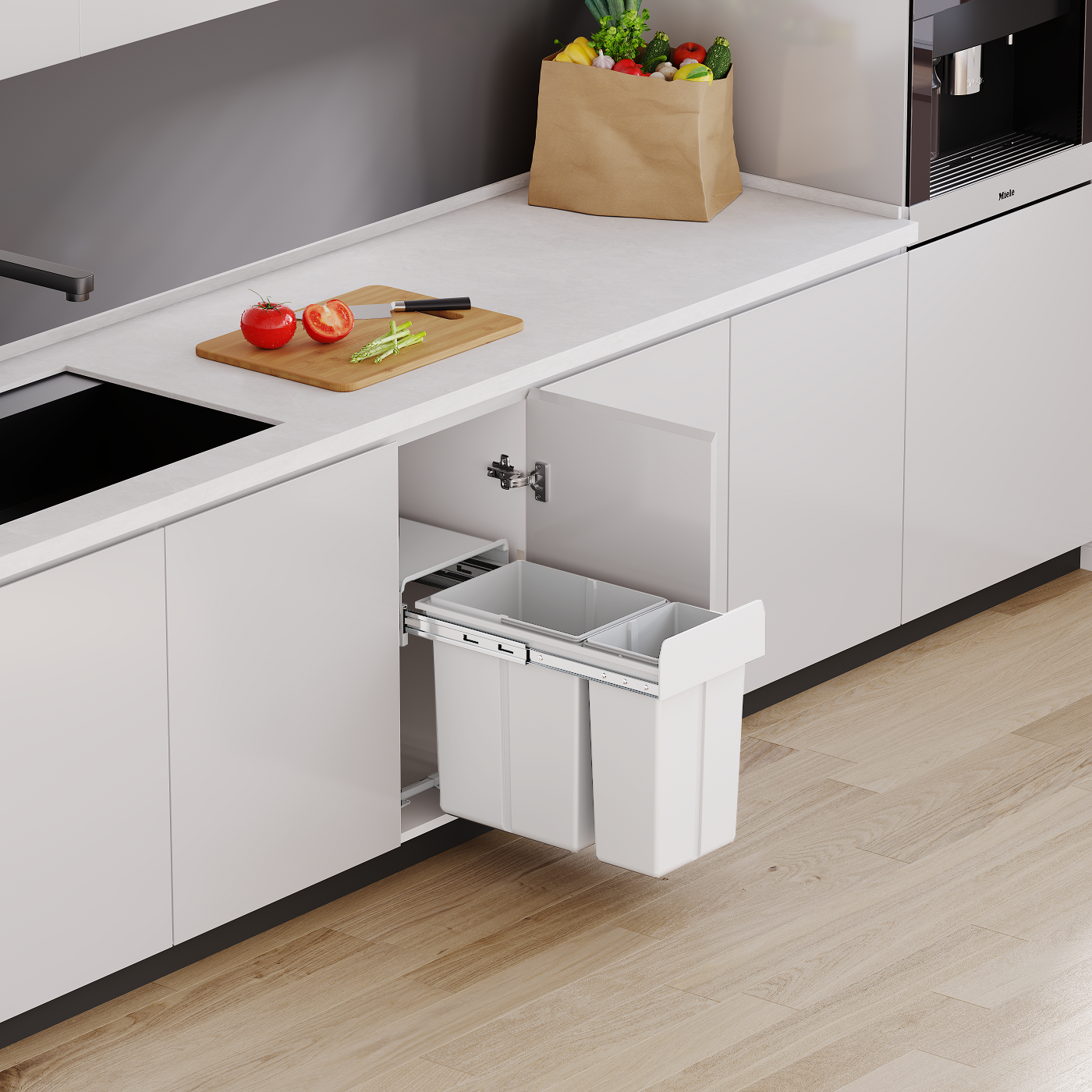 05- Soft Close Waste Bin (White)