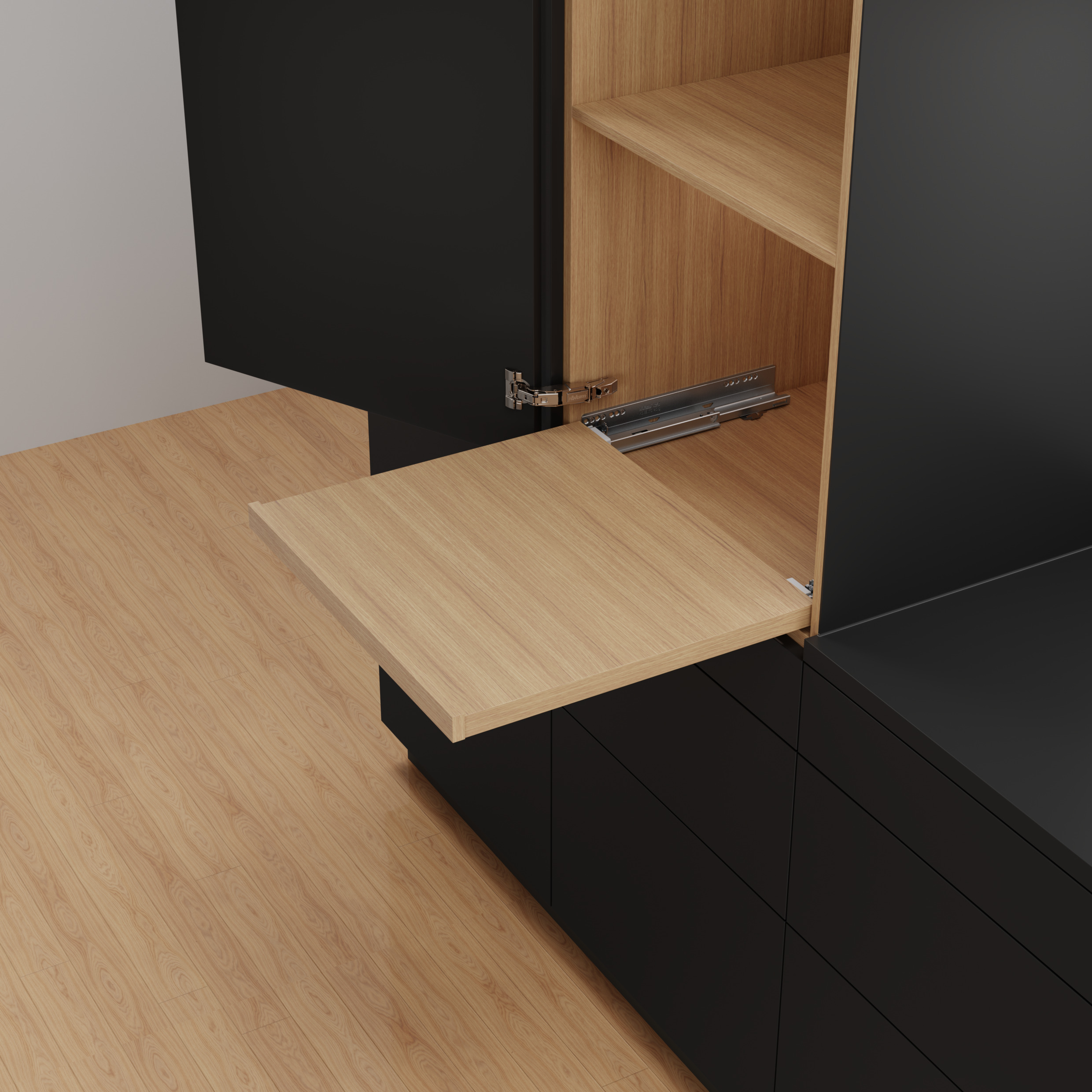 - Easy opening and integrated with BLUMOTION for silent and effortless closing